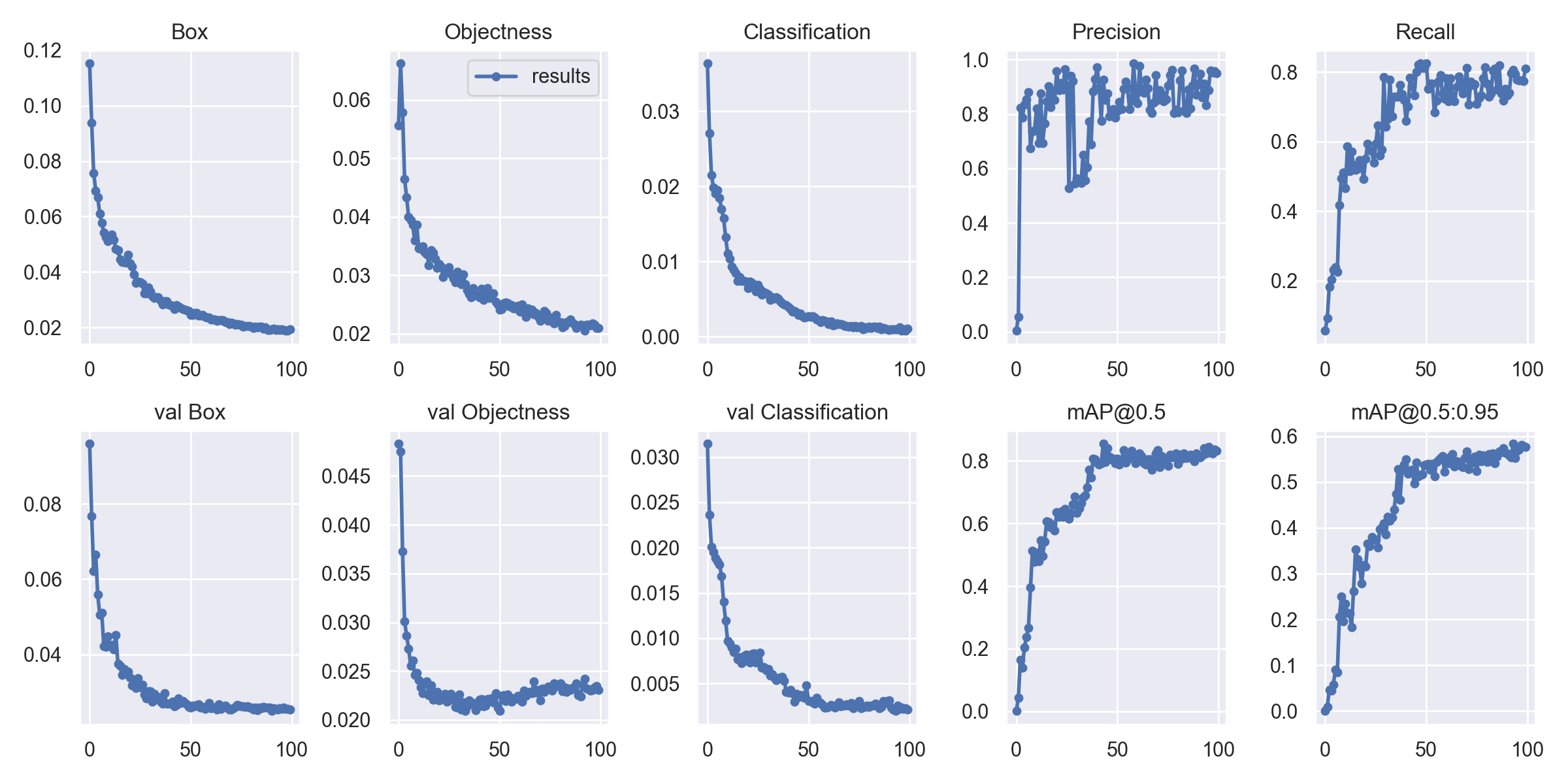 After each training session, the results (logs, charts, checkpoints) are all handled by the repository and saved in the runs/train folder. Yolov5 bundles these charts automatically for you.