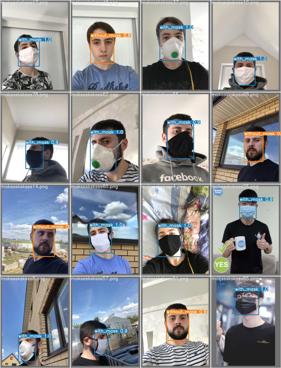 $ python train.py --img 640 --batch 16 --epochs 300 --data face_mask/data.yaml --weights yolov5s.pt